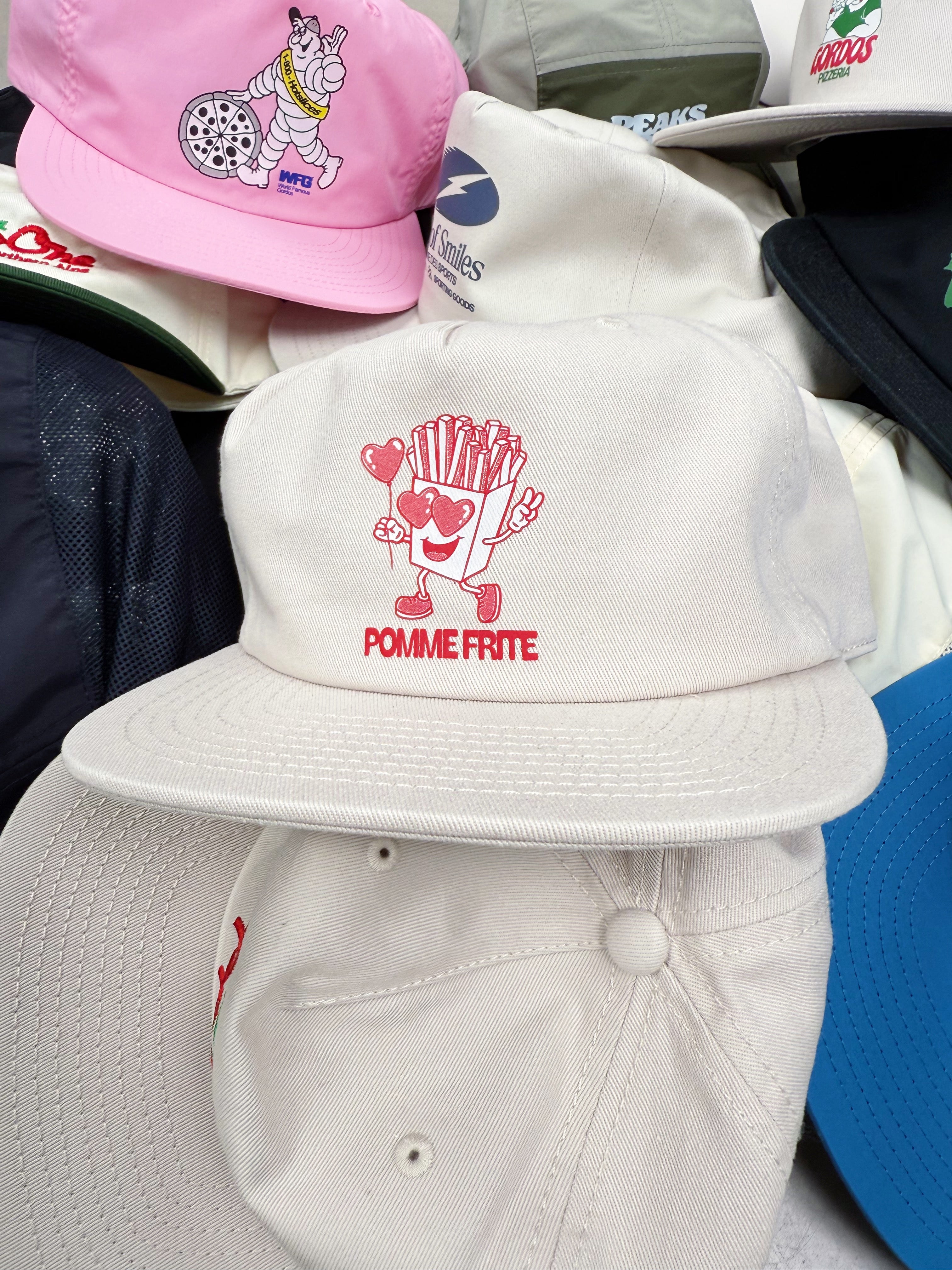 Our most love cap shape, for our most loved people. Pomme Frite enjoys a lovely new addition to the outfits.