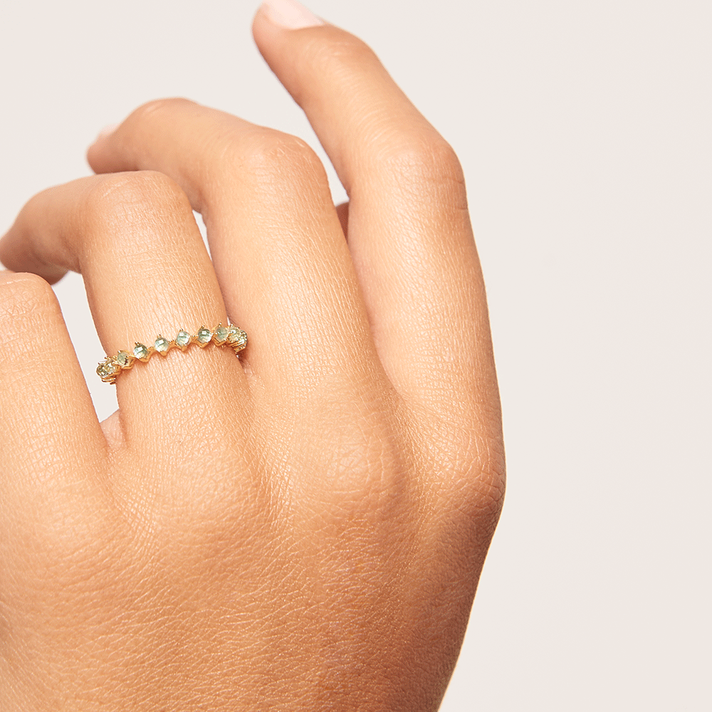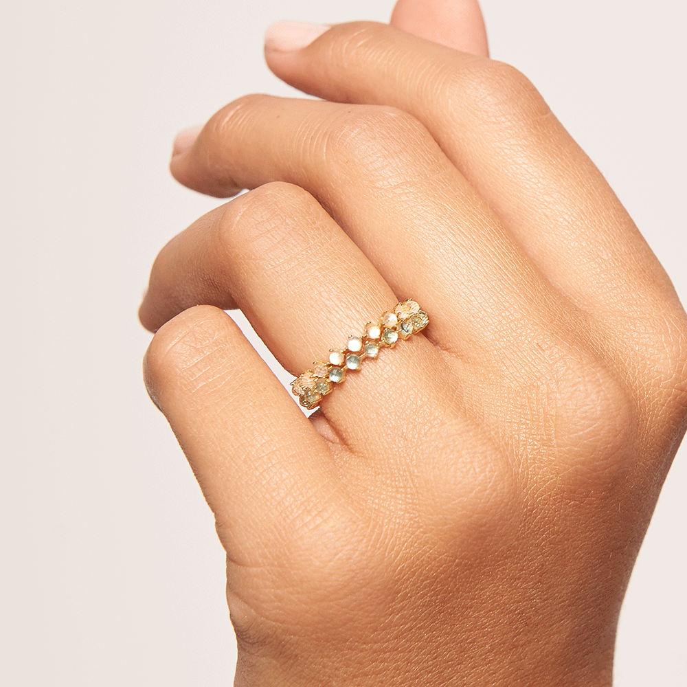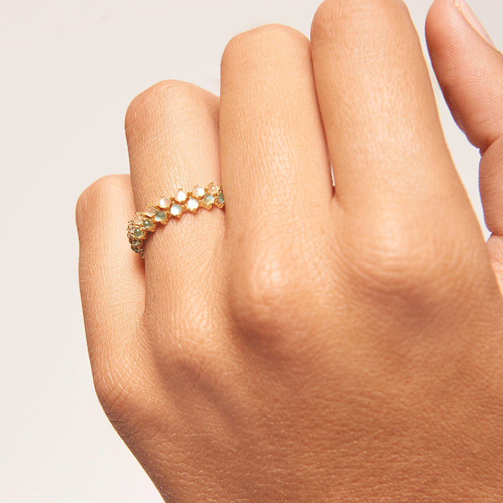 Anillo Mint - Stones: Mother of Pearl base and blue crystals