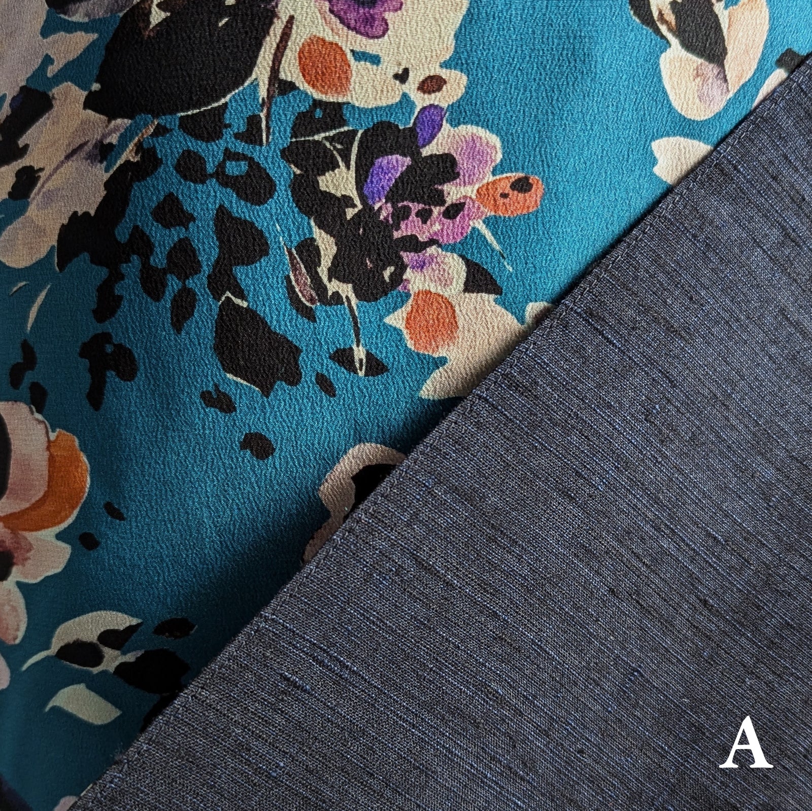 A flared reversible skirt with dead stock kimono fabric and dead stock Italian silk.