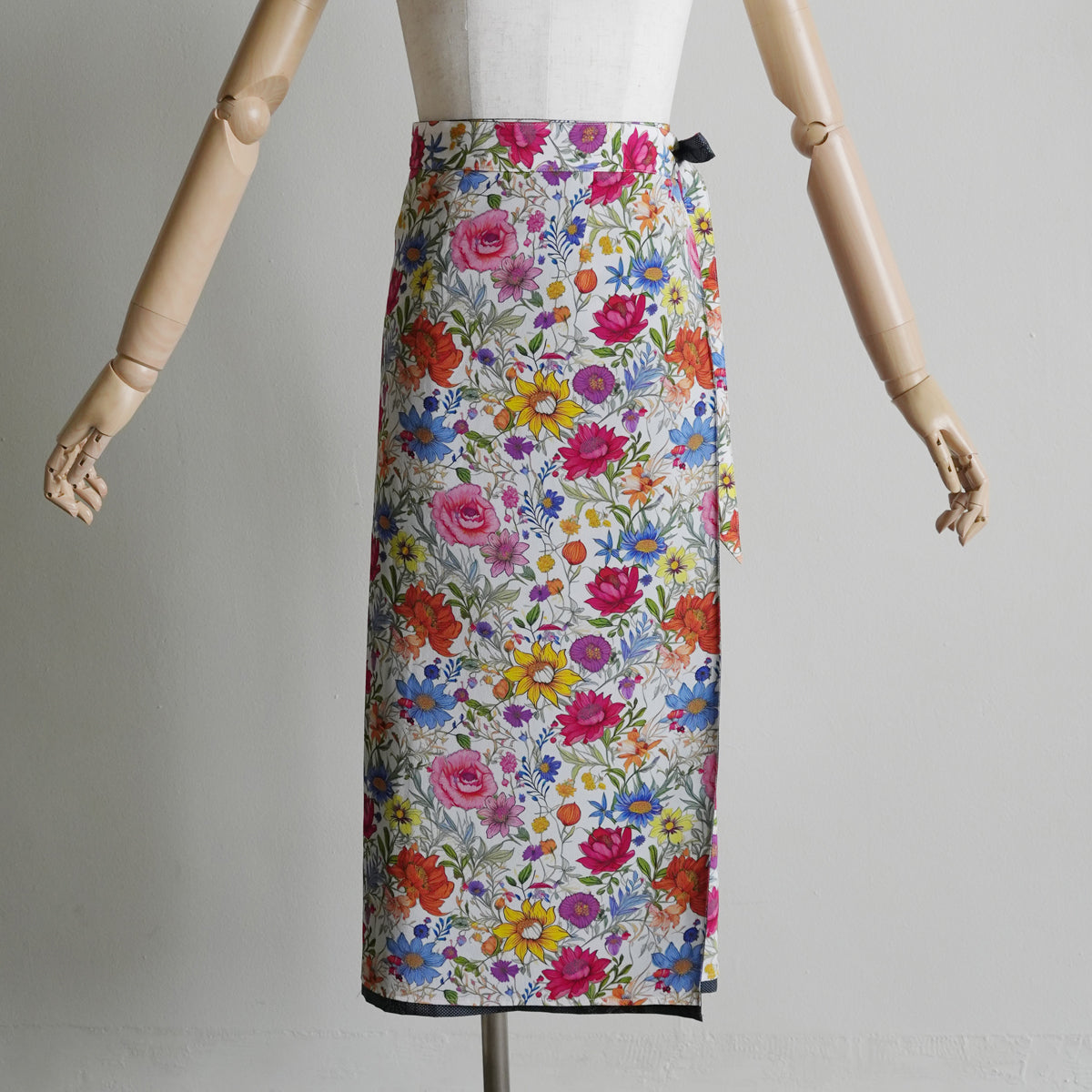 A reversible skirt with dead stock kimono fabric and dead stock Italian silk.
