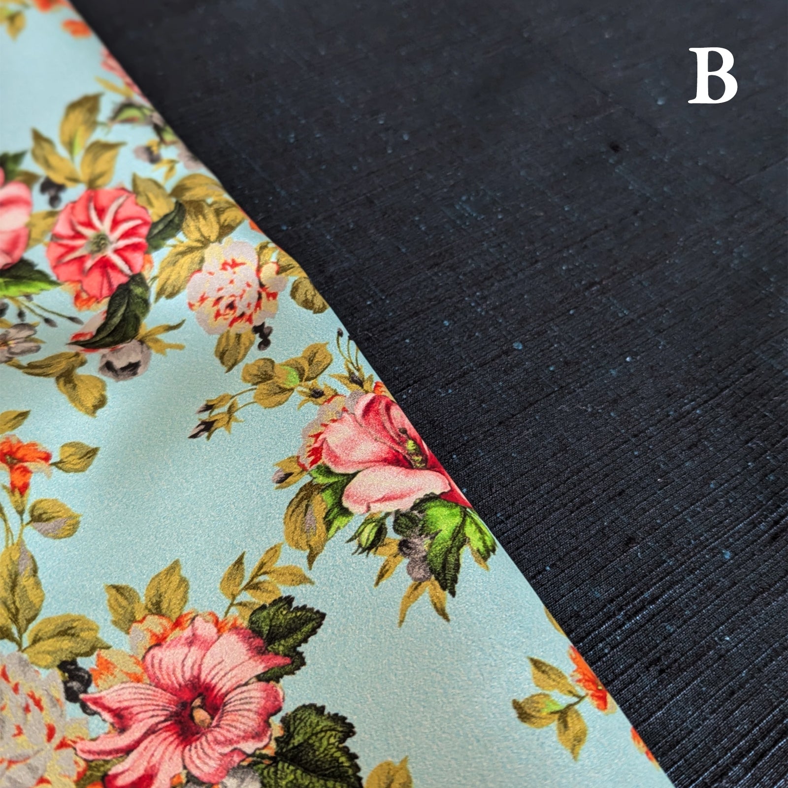 A reversible skirt with dead stock kimono fabric and dead stock Italian silk.